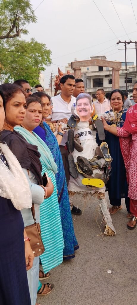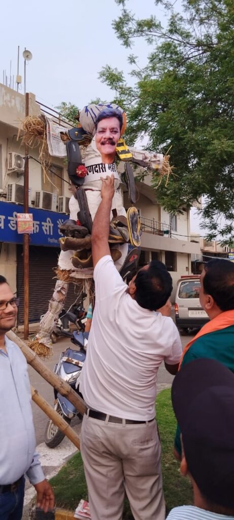 छत्तीसगढ़ में नेता प्रतिपक्ष चरण दास महंत के द्वारा देश के प्रधानमंत्री के लिए अभद्र भाषा का प्रयोग करते हुए डंडे से सर फोड़ने की बात करने व जनता को उकसाने के विरोध में कोसाबाडी मंडल भाजपा के द्वारा सुभाष चौक पर चरण दास महंत के पुतले पर जूते एवं चप्पलों की माला पहनाकर विरोध प्रदर्शन किया गया।