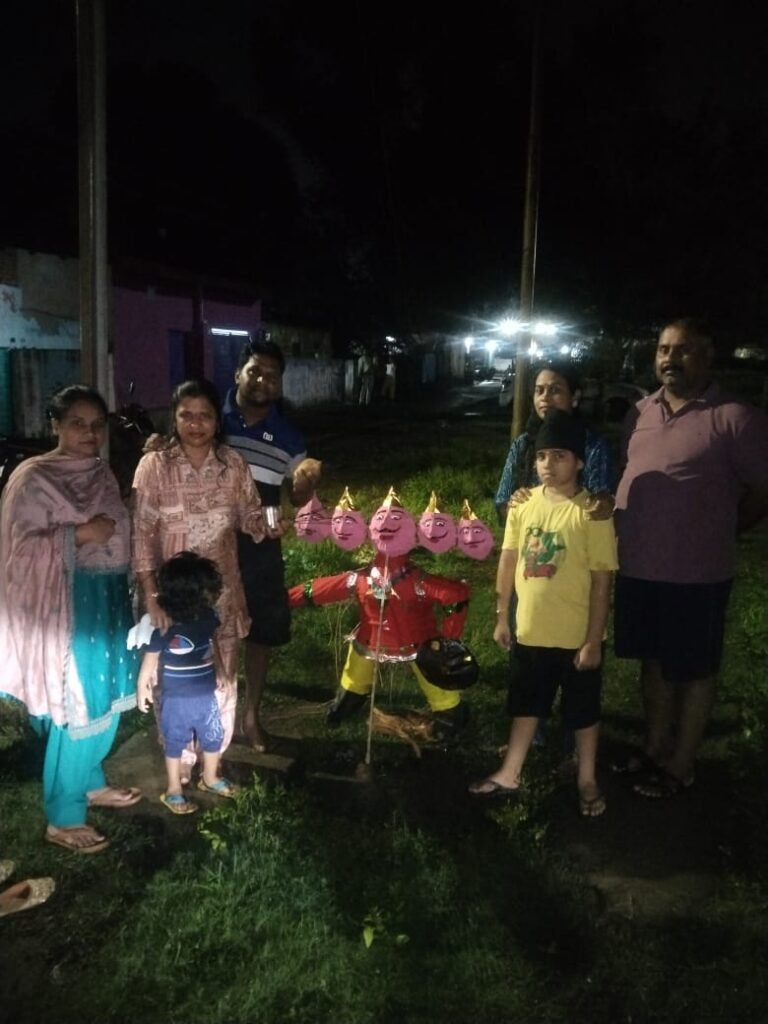 कोरबा। उपनगरी कुसमुंडा स्थित आदर्श नगर कॉलोनी में दशहरे के अवसर पर बच्चों और महिलाओं में रावण दहन का खास उत्साह देखने को मिला।बच्चों ने बाजार से छोटा रावण पुतला खरीदा और शाम लगभग छह बजे श्याम यादव व मंजू यादव के सहयोग से विधिवत पूजा-अर्चना के बाद उसका दहन किया गया। इस अवसर पर महिलाओं ने भी बच्चों का पूरा सहयोग किया।पूरे आयोजन के दौरान बच्चे और युवा नाचते-गाते, कूदते-फांदते मस्ती करते नजर आए। रावण दहन के इस कार्यक्रम का सभी ने भरपूर आनंद उठाया। इस मौके पर जसप्रीत सिंह, हुकुम सिंह, सी.बी. महिलाएं, उमा सोनी, निक्की कौर, मंजू यादव, निशा रंधावा सहित अन्य लोग उपस्थित रहे।