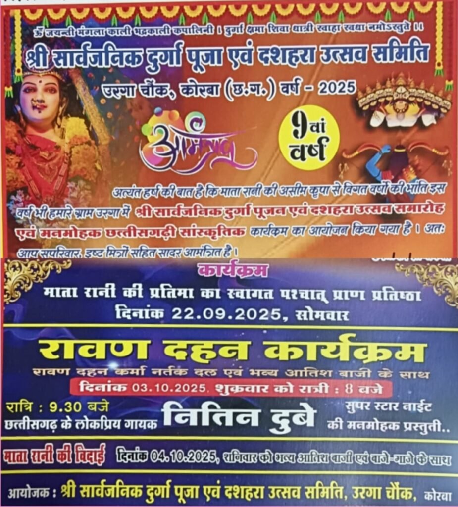 उरगा में दुर्गोत्सव एवं भव्य दशहरा की तैयारियां जोरों पर, नितिन दुबे देंगे प्रस्तुति