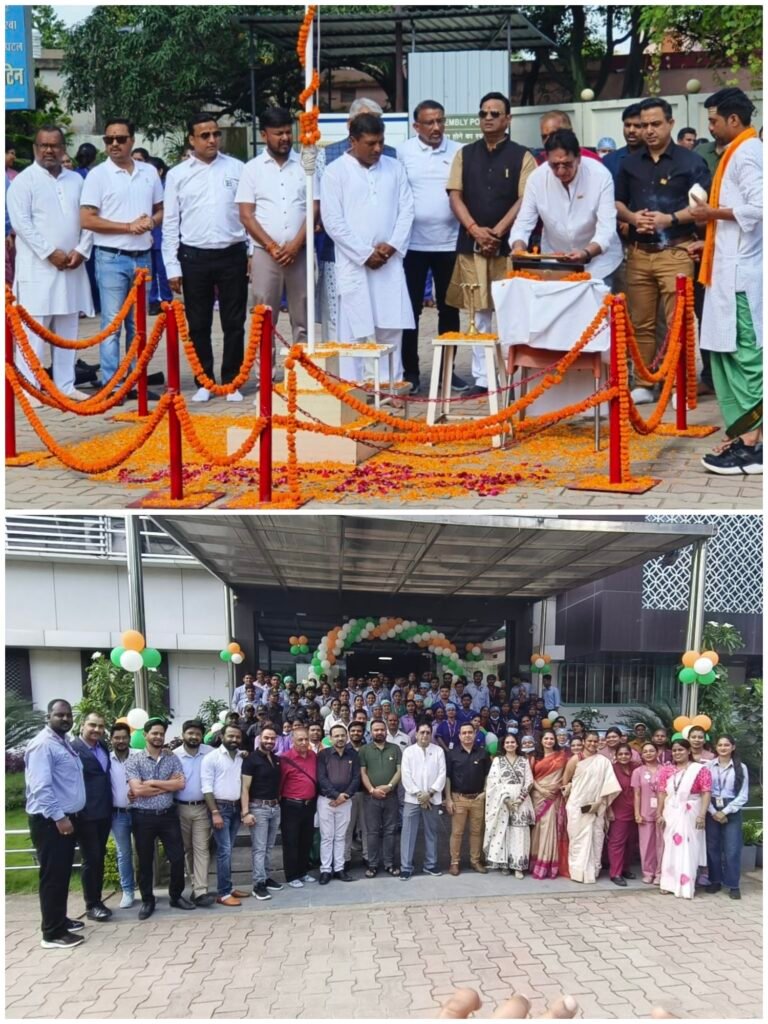 कोरबा। 79वें स्वतंत्रता दिवस के अवसर पर न्यू कोरबा ग्रुप ऑफ हॉस्पिटल्स (एनकेएच) में ध्वजारोहण एवं देशभक्ति से ओतप्रोत कार्यक्रम का आयोजन किया गया। प्रातः 9 बजे ग्रुप डायरेक्टर डॉ. एस. चंदानी एवं वरिष्ठ चिकित्सक डॉ. शंकर पालीवाल ने तिरंगा फहराया। राष्ट्रगान के बाद सुरक्षा गार्ड ने सलामी दी और शहीदों को श्रद्धांजलि अर्पित की गई।इस अवसर पर डॉ. नगेंद्र बागरी, डॉ. अविनाश सिंग, डॉ. अनिल अरोरा, डॉ. मनीष गोयल, डॉ. संजय अग्रवाल सहित सभी वरिष्ठ चिकित्सक मौजूद रहे। वहीं एडमिन स्टाफ से रुना रागिनी, राजेश चंदानी, अंकिता चक्रवर्ती, नाहिदा परवीन के साथ क्लिनिकल, नॉन-क्लिनिकल, पैरामेडिकल, एडीसी स्टाफ, एनकेएच बालाजी ब्लड बैंक स्टाफ, मेडजोन स्टाफ एवं रोटरी क्लब के सदस्य बड़ी संख्या में कार्यक्रम में शामिल हुए।कार्यक्रम की शुरुआत भारत माता की पूजा से हुई। इसके बाद ध्वजारोहण कर गुब्बारे आकाश में छोड़े गए। विशेष पहल के तहत एनकेएच ग्रुप ऑफ हॉस्पिटल्स और रोटरी क्लब ने मिलकर टीबी मरीजों को फूड हैम्पर व स्वतंत्रता दिवस की मिठाई वितरित की। डॉ. एस. चंदानी ने कहा कि स्वतंत्रता संग्राम सेनानियों के बलिदान से हमें प्रेरणा लेकर जीवन में नैतिक मूल्यों और चरित्र का निर्माण करना चाहिए। उन्होंने घोषणा की कि आजादी के महोत्सव पर बुजुर्गों के लिए नि:शुल्क होम चेकअप सेवा 31 अगस्त तक उपलब्ध रहेगी, जो कोरबा शहर से 10 किलोमीटर क्षेत्र तक लागू होगी। एनकेएच ग्रुप ऑफ हॉस्पिटल्स ने पुनः समाज सेवा और स्वास्थ्य सेवाओं में उत्कृष्टता के संकल्प को दोहराया।