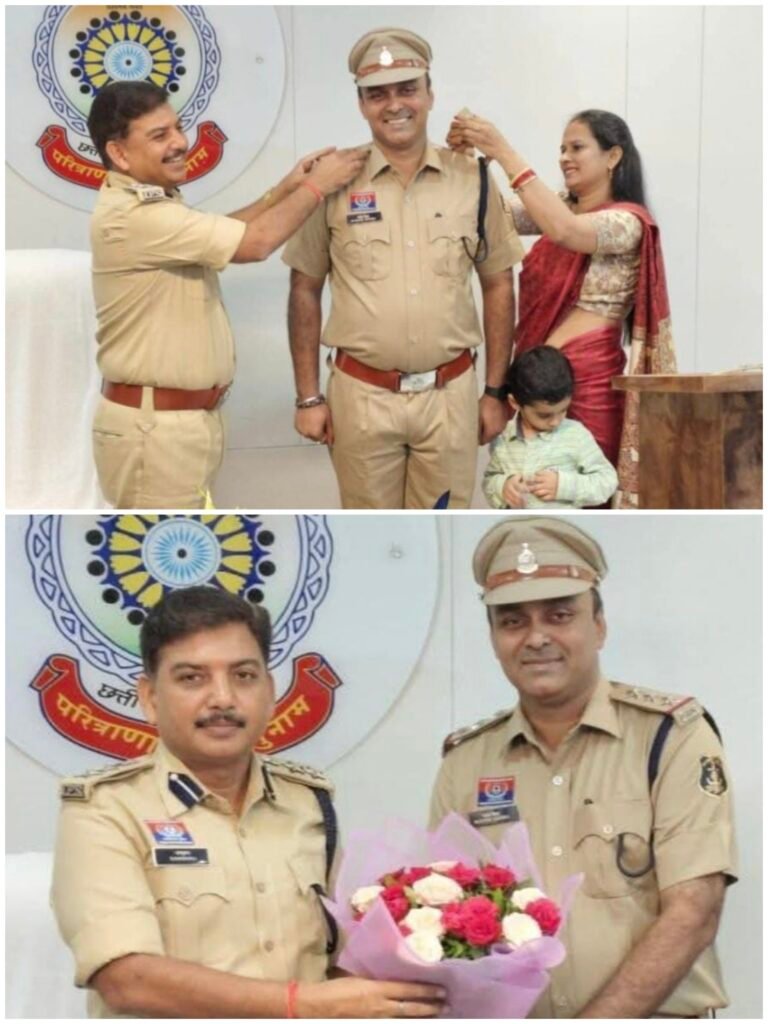 बेमेतरा कोतवाली थाना प्रभारी मयंक मिश्रा हुए निरीक्षक पद पर पदोन्नत, एसएसपी ने स्टार लगाकर दी बधाई