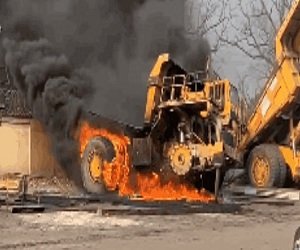 जिले के कुसमुंडा खदान में पुराने तीन नम्बर वर्कशॉप में खड़ी 100 टन वजनी क्षमता वाले विमल कंपनी के डंफर में भीषण आग लग गई। आग से उठने वाली धुएं का काला गुब्बार कई किलोमीटर दूर से दिखाई दिया। बताया जा रहा है कि ये डंफर सर्विस ऑफ हो चुके हैं।